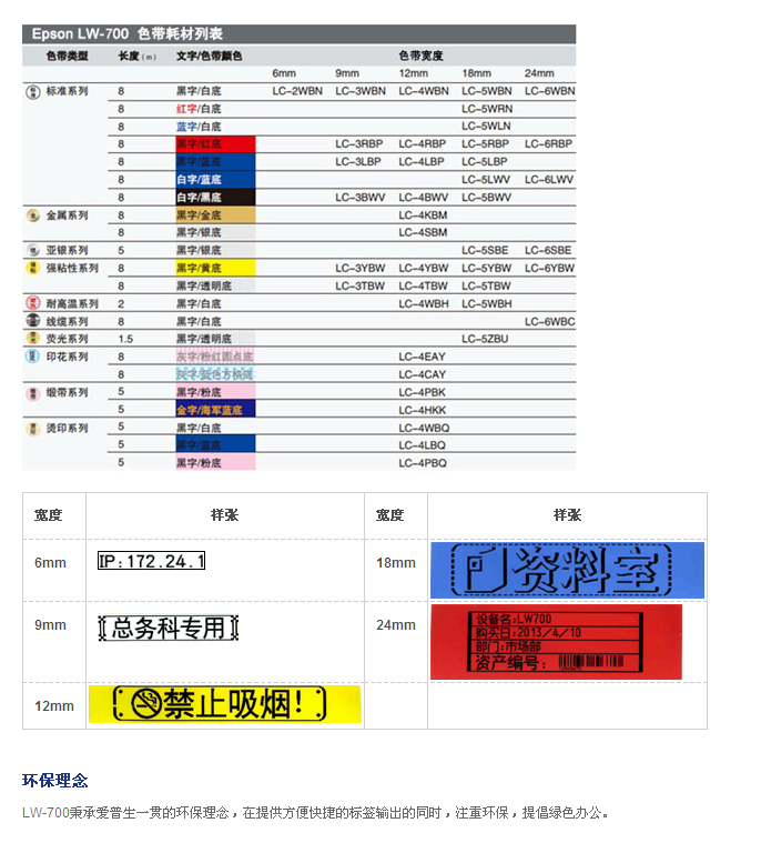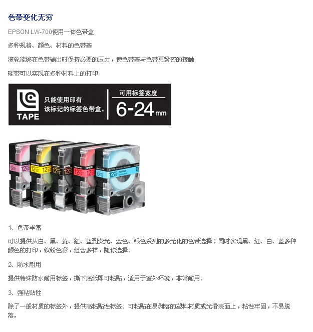 • Epson LW-700系列色带